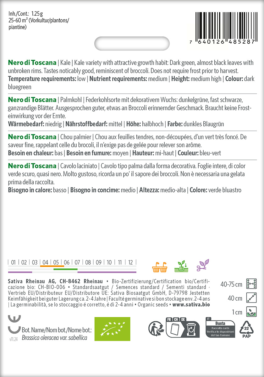 Produktinformationen "Palmkohl 'Nero di Toscana', BIO Samen"
