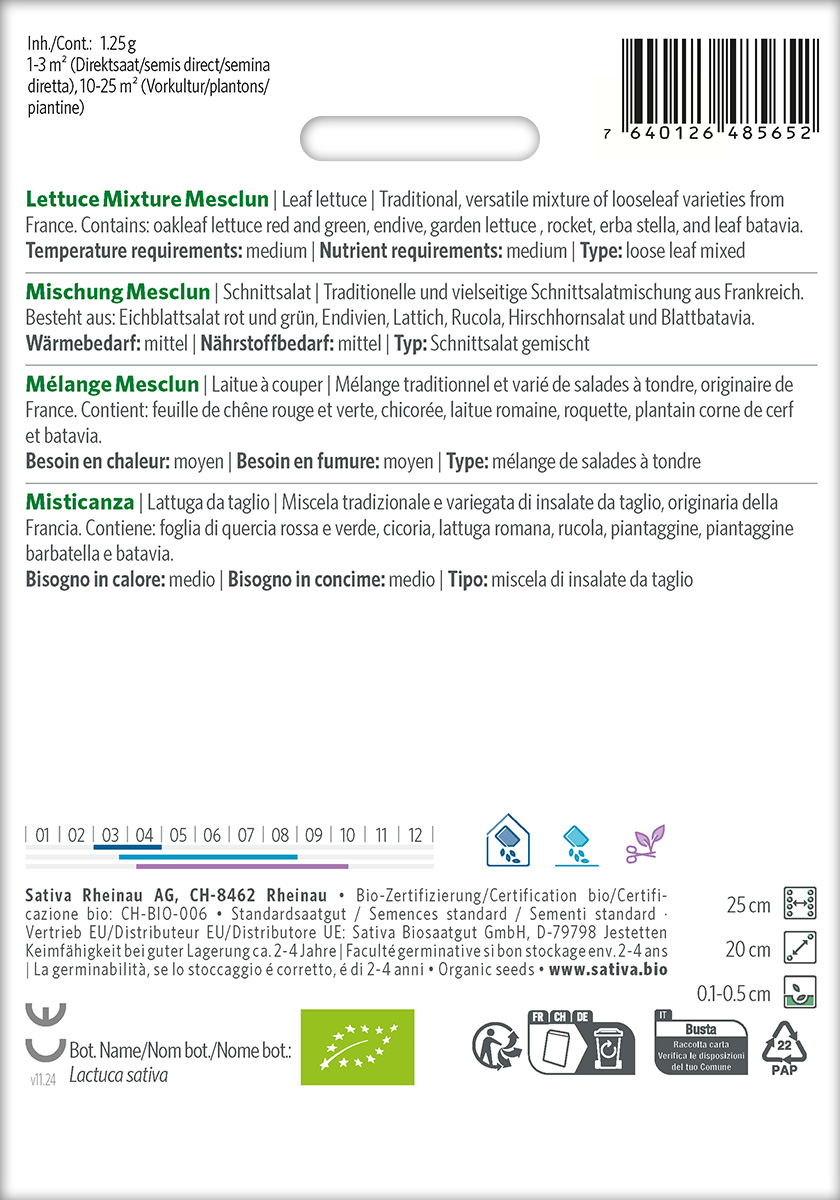 | Was braucht der Schnittsalat 'Mischung Mesclun'? | |
